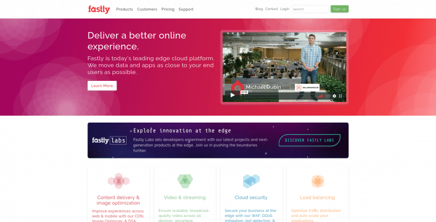 Fastly describes its network as an edge cloud platform designed to help developers extend their core cloud infrastructure to the edge of the network, closer to users. The Fastly edge cloud platform includes its content delivery network, image optimization, video & streaming, cloud security, and load balancing services. Fastly was founded in 2011.
