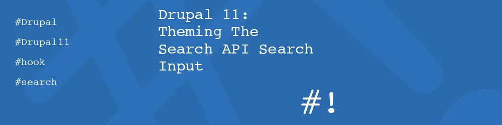 The suggestion hook for the input element can now be focused to look for the data-twig-suggestion attribute in the attributes array. If this is present then we know that we have injected this and can use this in our suggestion. Instead of throwing the attribute away, we pass this along to the suggestion. This gives us the ability to tweak the suggestion based on values in the future if we need to.A common request I see when theming Search API forms is to swap out the normal submit element with a magnifying glass icon. Performing this action isn’t difficult, but it does require adding a couple of operations to add a suggestion so a custom template can be used.Swapping out this input element takes a couple of steps, and I although I have done this technique a few times I still need to dig into old code to figure out how I did it. So, I thought I would document it so I didn’t have to go looking for the solution again.Finding the correct form is a little tricky because the name of the search form differs between sites and is dependent on the view that has been set up to wrap the search results. I normally use the name of the view to do find the right form, but it is also possible to infer the correct form through other means.The search input element should now contain a data attribute called data-twig-suggestion.If we add a theme suggestion alter hook for the input element, the element itself has no knowledge of the context that surrounds it. This makes it tricky to know that we are altering the correct element or even to inject a suggestion that would be unique for the search form.